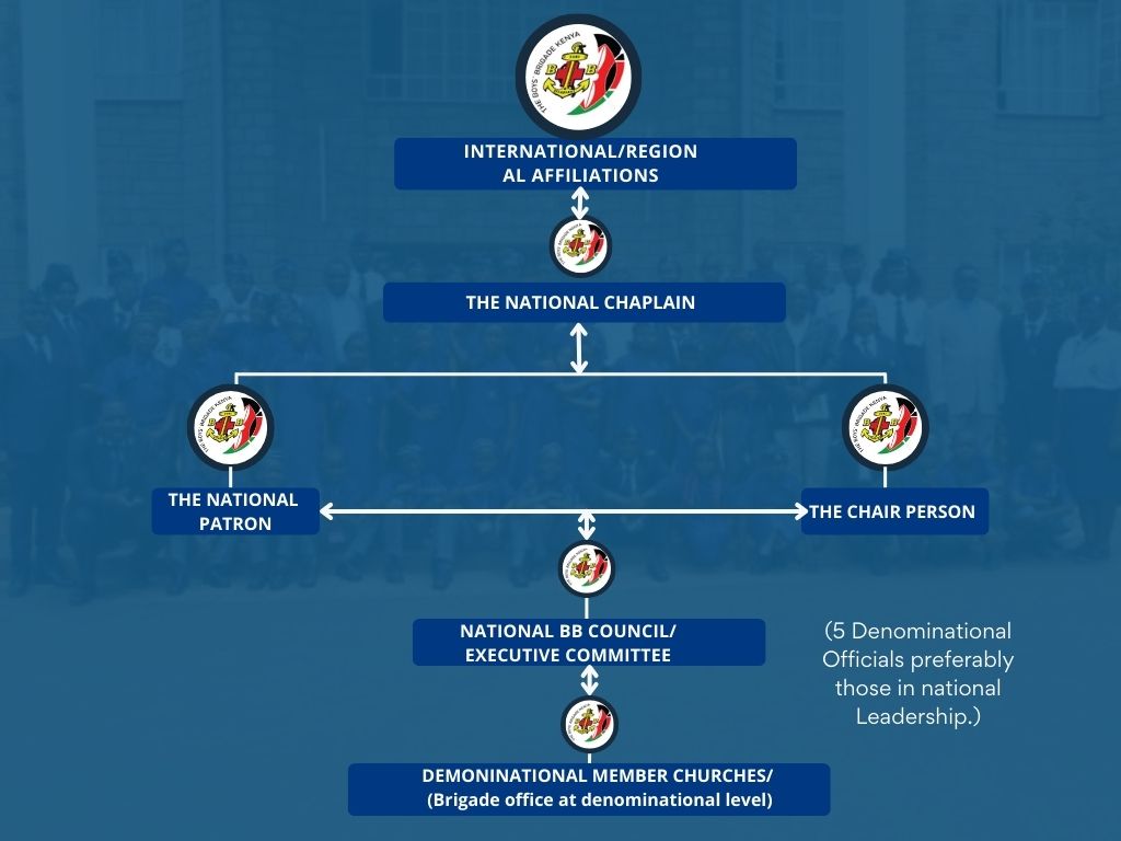 Each denomination has its own Brigade Council responsible for managing Brigade affairs within its respective church. The top leadership from each denominational council forms the National Council of The Boys’ Brigade Kenya (BBK), the apex body responsible for national-level decisions.